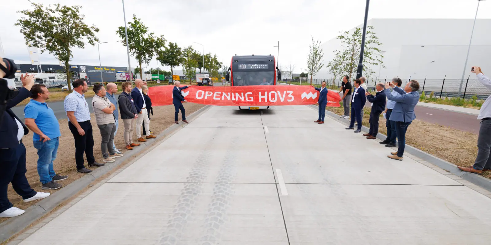 In het noordwesten van Eindhoven ligt HOV3, de derde Hoogwaardig Openbaar Vervoerlijn in Eindhoven. Deze verbindt de grote werkgevers in Eindhoven Noordwest met het HOV-netwerk. In 2021 zijn de eerste werkzaamheden aan de HOV3 gestart en deze zomer wordt de HOV3 opgeleverd. Hier is op vrijdag 22 augustus feestelijk bij stilgestaan door gedeputeerde Stijn Smeulders van provincie Noord-Brabant en wethouder Robert Strijk van gemeente Eindhoven met diverse betrokkenen, die aan de buslijn hebben meegewerkt. Samen maakten zij een bustour langs verschillende interessante locaties over de nieuwe HOV3-lijn. In de eerste week van september reden de eerste lijnbussen over HOV3.